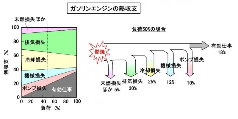 この図をは、Clicccarの自動車用語辞典の「車の低燃費技術とは? 燃費向上手法、エネルギー損失、ダウンサイジングなどを解説」を借りている。