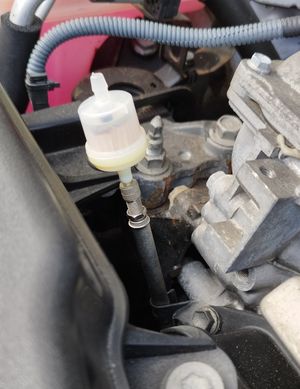 した時にエアクリーナケース内にブローバイの配管が突出しているのは確認していた。カウリングの分解が面倒なので、そのうちエアクリーナーを交換する時に装備しようとバルブを手当していたが距離が伸びなかった。交換時期の半分以下の距離だが13年経過しているのでエアクリーナー交換のついでにバルブを設置したいのである。バルブは確か日産製の4輪用PCVバルブ(#47478)でホース部分の外径は10mmである。手元にさまざまな径のワンウェイバルブがある。