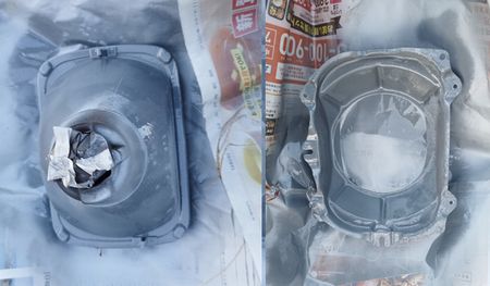 不思議なことに、右ヘッドライト周辺のサビはそれほどひどくない。しかし左ヘッドライト周辺は特にネジのサビがひどい。その理由はベンチレーションの風を左ヘッドライト奥からとっていたことが理由のようだ。つまり道路で融雪剤を浴びた風雨が左ヘッドライト内部に取り込まれていたからだろう。
