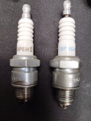 BP6HSはどこかで見た型番だと思ったら、アドレスV100のBPR7HSAの親戚だった。V100は電極がでっぱったPがつき、雑音防止の抵抗入りでRがついている。ということはこのエンジン自体がV100と親戚なのかも知れない。外観に傷が殆ど無いこととプラグが減っていないことから、購入早々に始動不良になり死蔵されていた個体だろう。